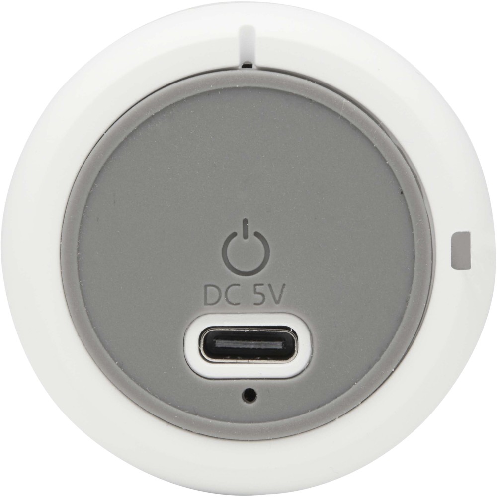 A kompakt Velkis 3W Bluetooth hangszóró újrahasznosított műanyagból készült, így bárhová magával viheti kedvenc zenéit. A termék kényelmes csuklópánttal és egyszerű, egygombos vezérléssel rendelkezik a praktikus használat érdekében. A 300 mAh kapacitású akkumulátor és a Type-C töltőcsatlakozó tökéletes hordozható audiómegoldást kínál, a csomag pedig tartalmaz egy 30 cm-es USB-A - Type-C töltőkábelt is.