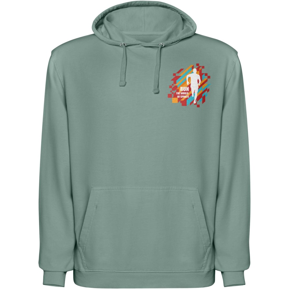 Koptatott (acid-wash) felületkezeléssel készült uniszex kapucnis pulóver, amely 2x1 bordás kötésű kézelőkkel és alsó szegéllyel készült. A kapucni színazonos single jersey bélést és passzoló lapos húzózsinórokat kapott, a nyakrésznél pedig esztétikus, színazonos fedőöltés található. A pulóver praktikus kenguruzsebbel rendelkezik a kényelmes használat érdekében. 100% pamut, 250 g/m2.