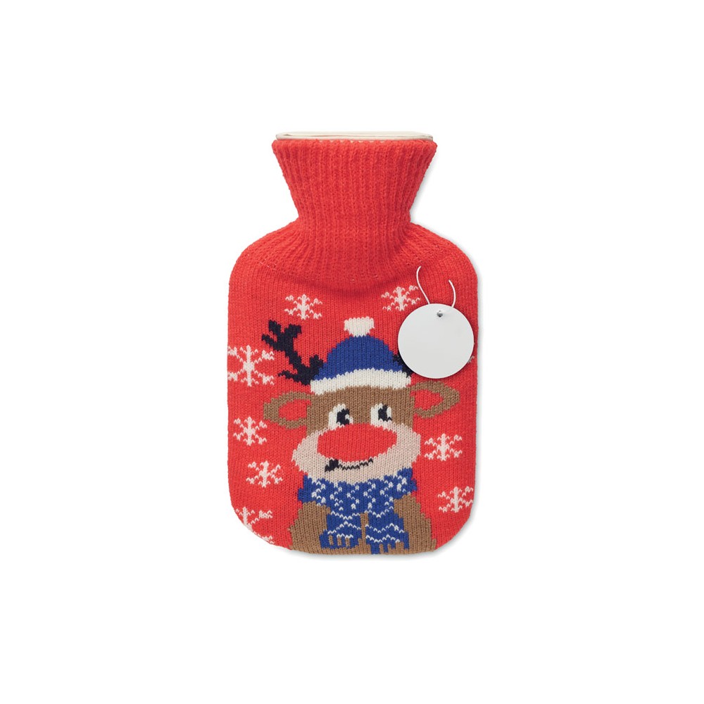 Karácsonyi mintás huzattal ellátott melegvizes palack. Főként ágyban való melegítésre használják, de specifikus testrészek hőkezelésére is alkalmas. 250 ml űrtartalom.
